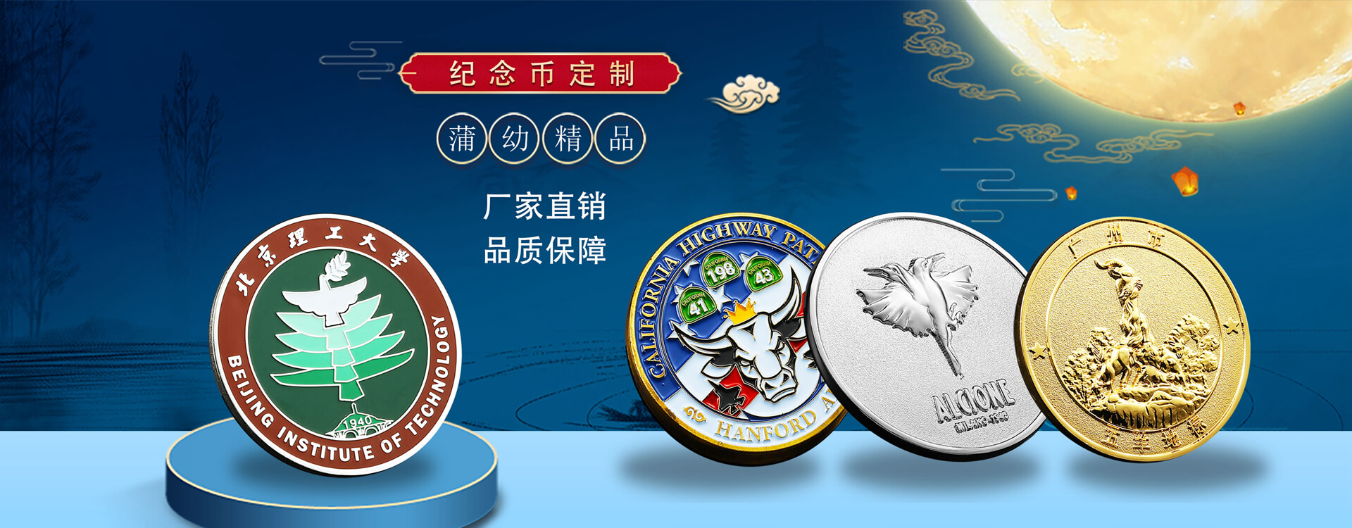 享譽全球的紀念禮品飾品生產廠家為您提供:徽章_獎章_紀念幣_書簽_鑰匙扣_工號牌_硅膠產品_冰箱貼/掛件_樹脂產品_紀念牌/獎牌_金屬盤_織帶